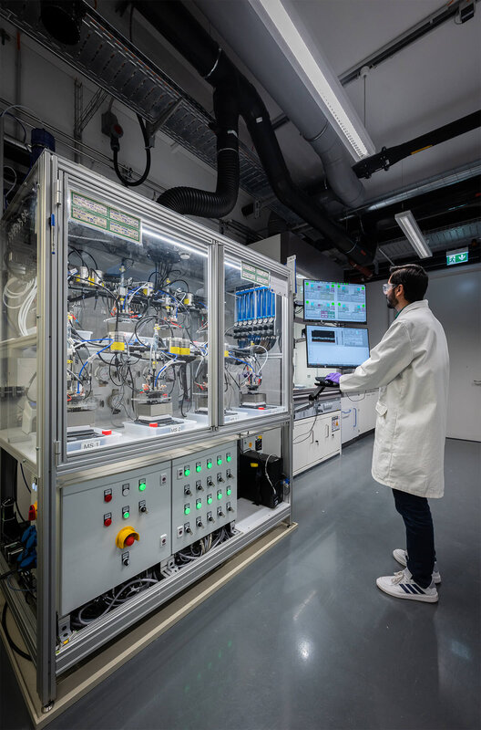 Untersuchung und Validierung von Stacks und Komponenten (Elektrodenbeschichtungen, Elektroden, Membranen usw.):