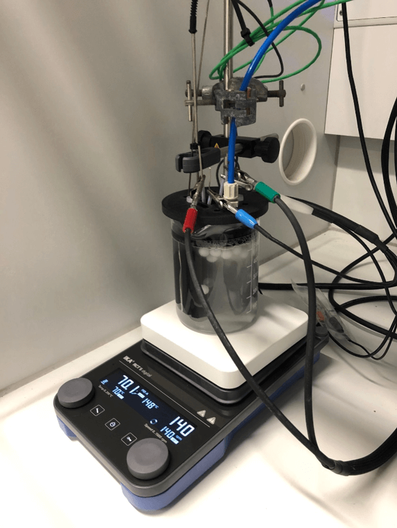 Untersuchung beschichteter kathodischer oder anodischer Einzelektroden in einer Messzelle.